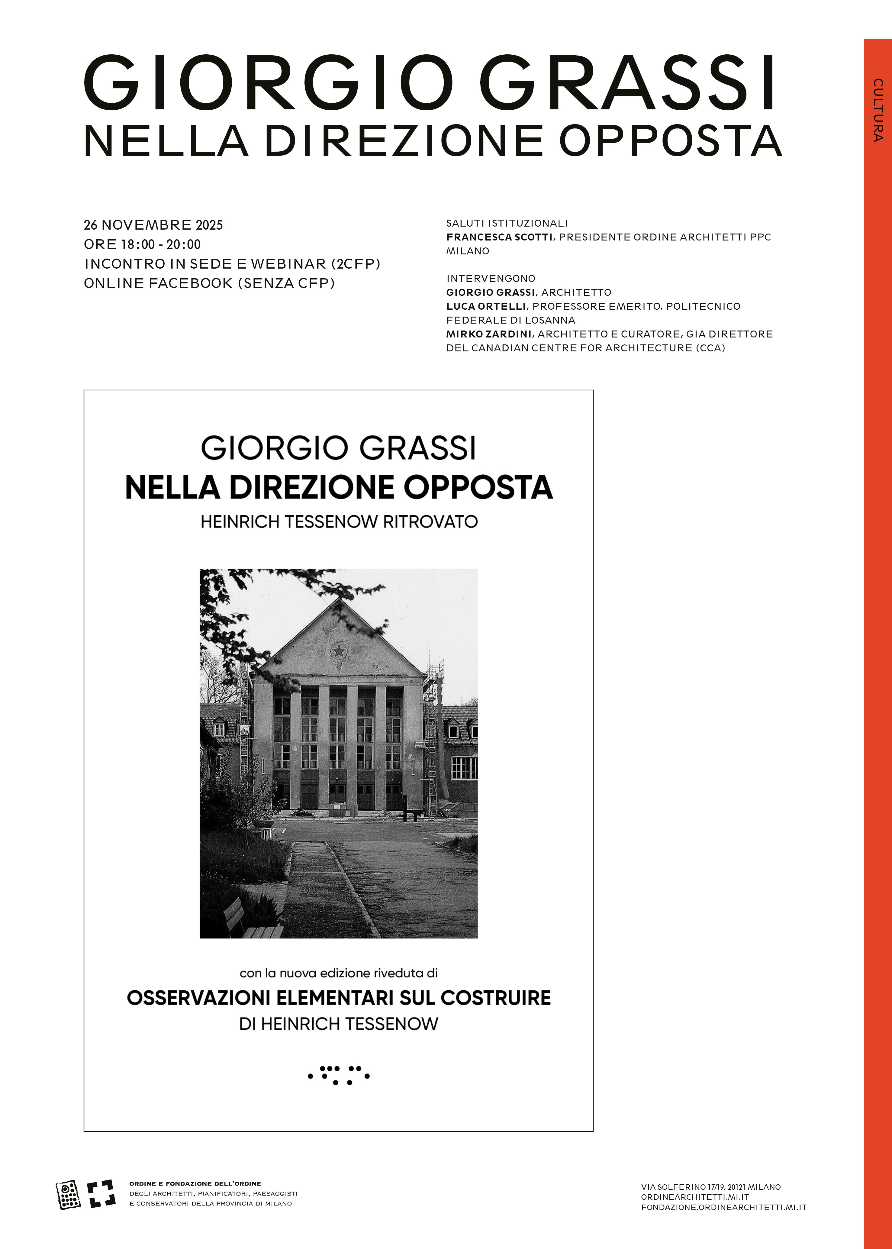 Giorgio Grassi. Nella direzione opposta / 2 cfp - 26 novembre webinar (iscritti all'Ordine di Milano)