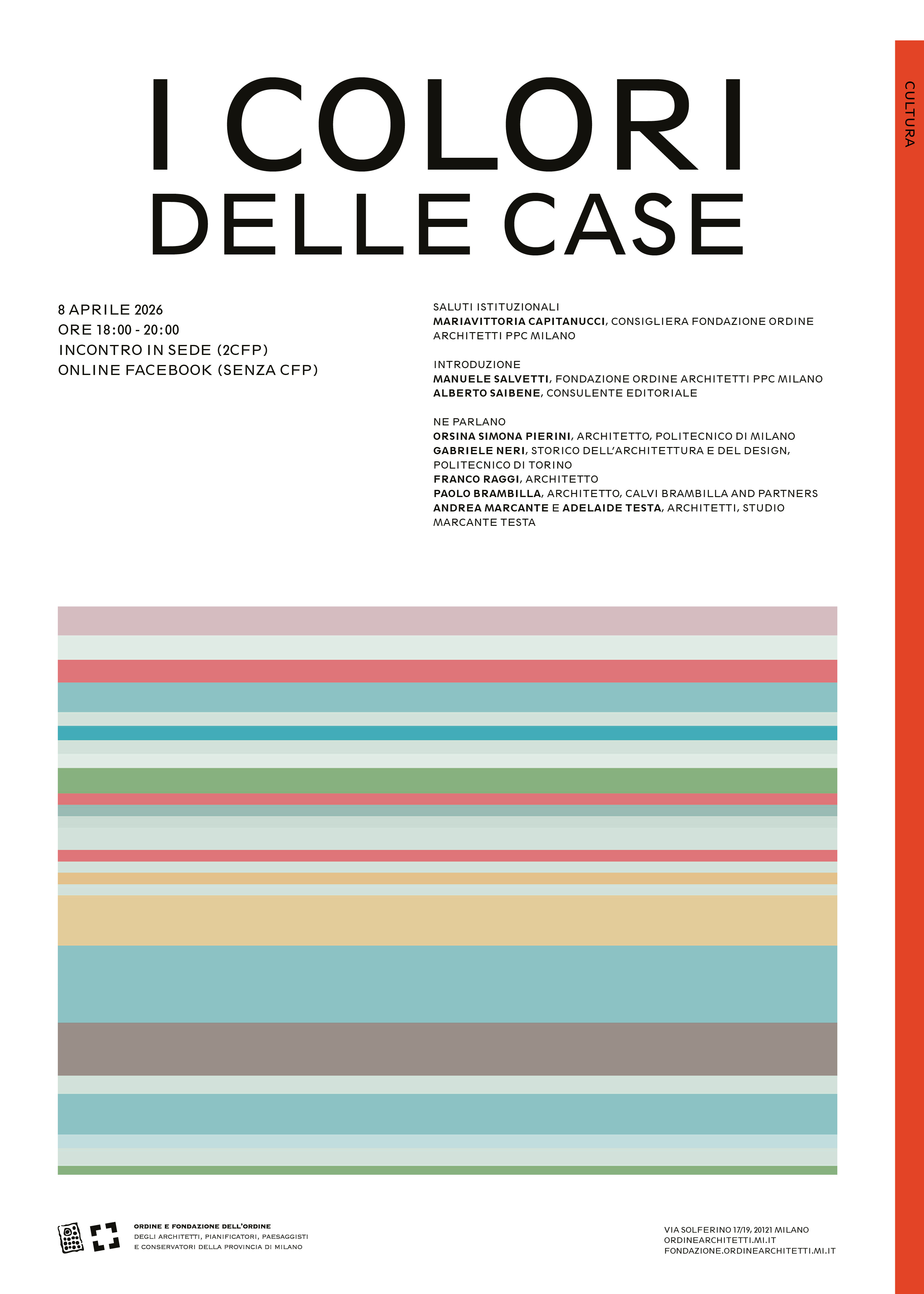 Partendo da alcuni casi studio oggetto della pubblicazione, l'incontro sarà un'occasione per ragionare, attraverso progetti e sperimentazioni del contemporaneo – non solo milanesi – su come il colore è materiale di progetto.
