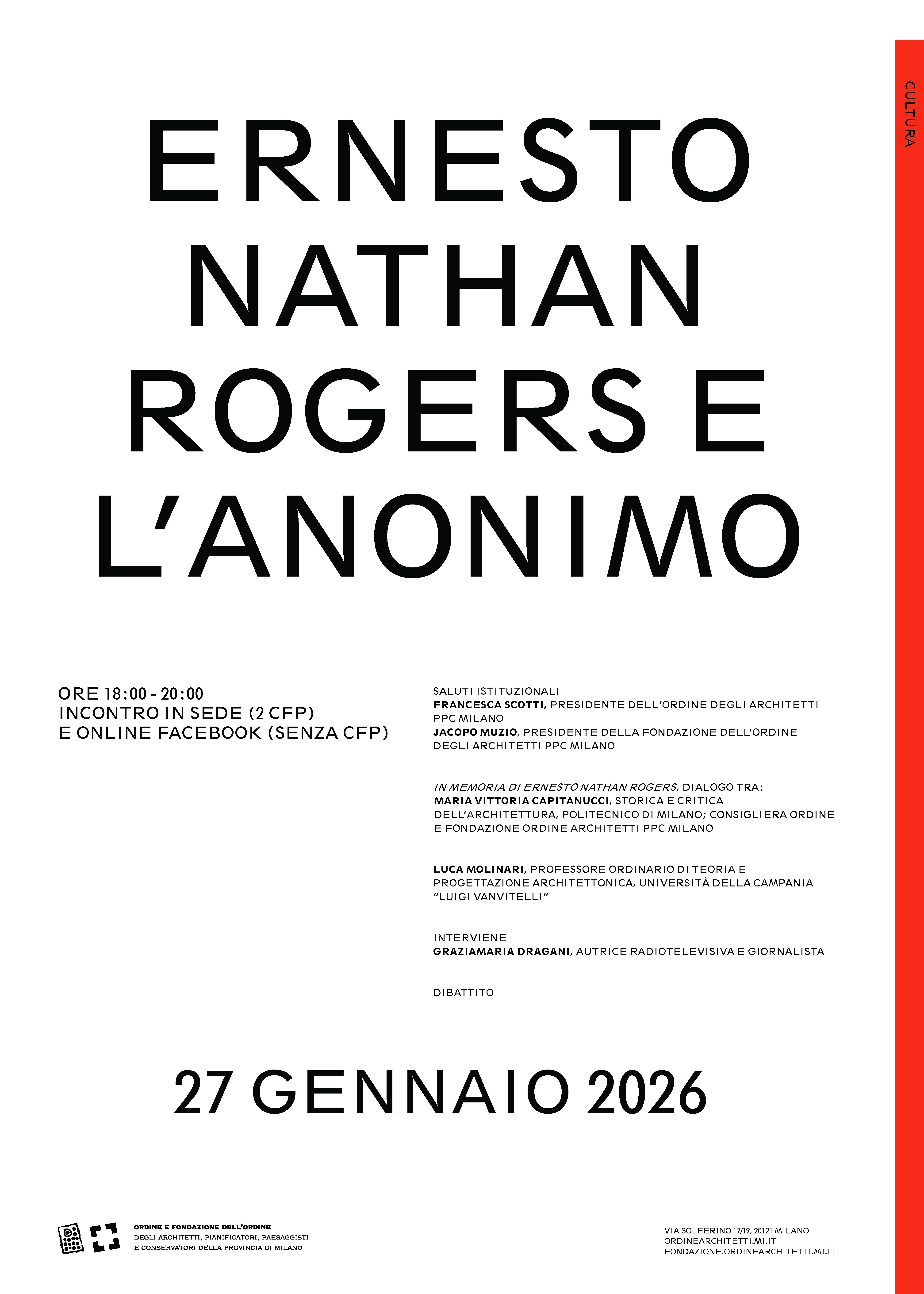 L'incontro dedicato a Ernesto Nathan Rogers vuole essere un omaggio simbolico a un indiscusso protagonista di quegli anni difficili tra dittatura e liberazione e, al tempo stesso, l'incipit di una serie di futuri approfondimenti scientifici e dibattiti sul ruolo dei B.B.P.R., studio milanese dalla forte vocazione internazionale.