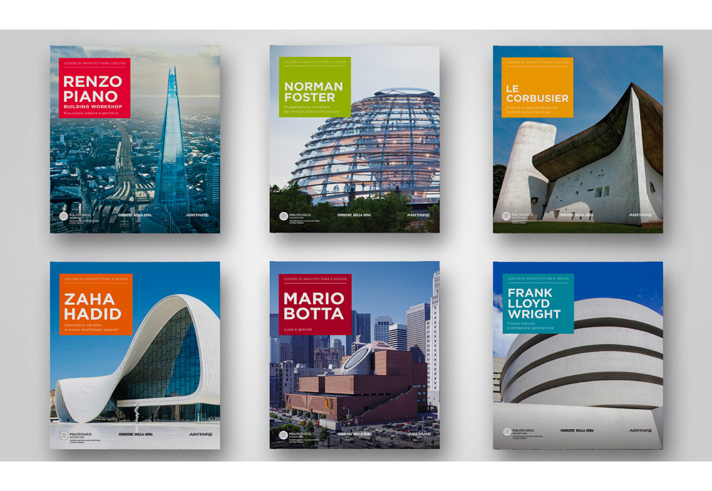Da Renzo Piano a Giuseppe Terragni, 50 monografie uniche e preziose che raccontano oltre 100 anni di architettura e design in Italia e nel mondo: Corriere della Sera e La Gazzetta dello Sport, in collaborazione con il Politecnico di Milano e Abitare, presentano una nuova collana che esplora e racconta le vicende architettoniche e design che hanno segnato punti fondamentali del progetto creativo. In ogni volume, un focus su un progetto di riferimento seguito da interviste esclusive, da un approfondimento tematico, da una sezione con i progetti e da un portfolio dedicato agli edifici storici. La collana è composta da 50 volumi inediti. Curatela di collana: Alessandra Coppa