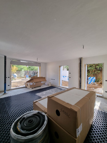 AL PIANO TERRA SOSTITUZIONE DEI RADIATORI E POSA DEL SISTEMA RADIANTE A PAVIMENTO.