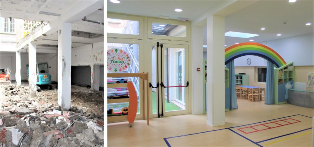 Recupero del patrimonio edilizio e cambio d'uso per creare uno spazio luminoso e protetto per i bambini in zona citta studi a Milano.