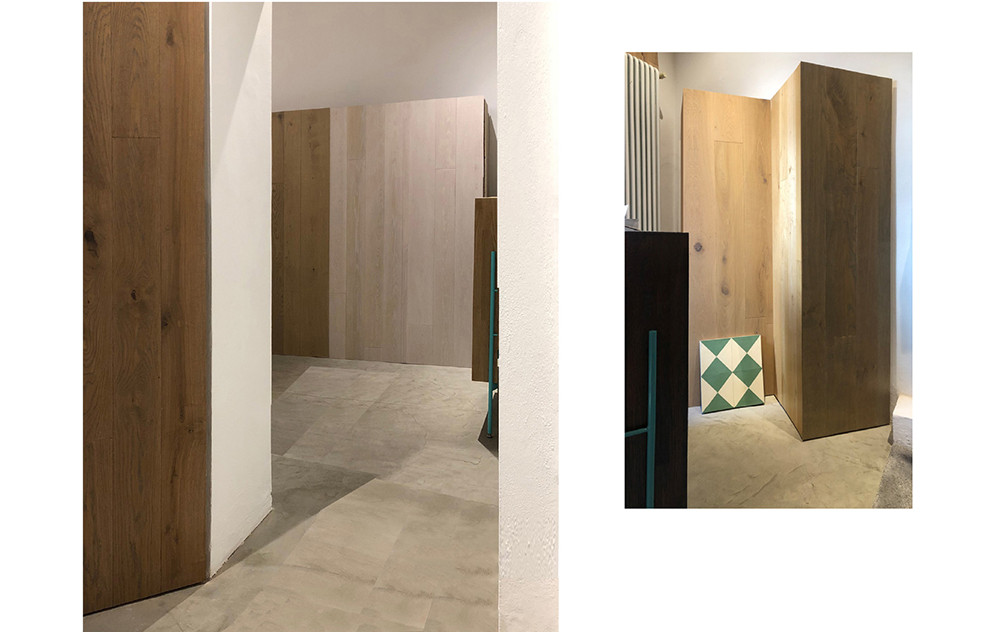 Gli spazi di questo negozio, caratterizzato da schermi in legno a zigzag - contenitori ed espositori matrici di finiture - oscillano tra serialità optical e lusso artigianale. Il progetto risponde all’esigenza di uno spazio distintivo ma non uniforme — dando vita a un’immagine dinamica e in continua evoluzione del negozio.