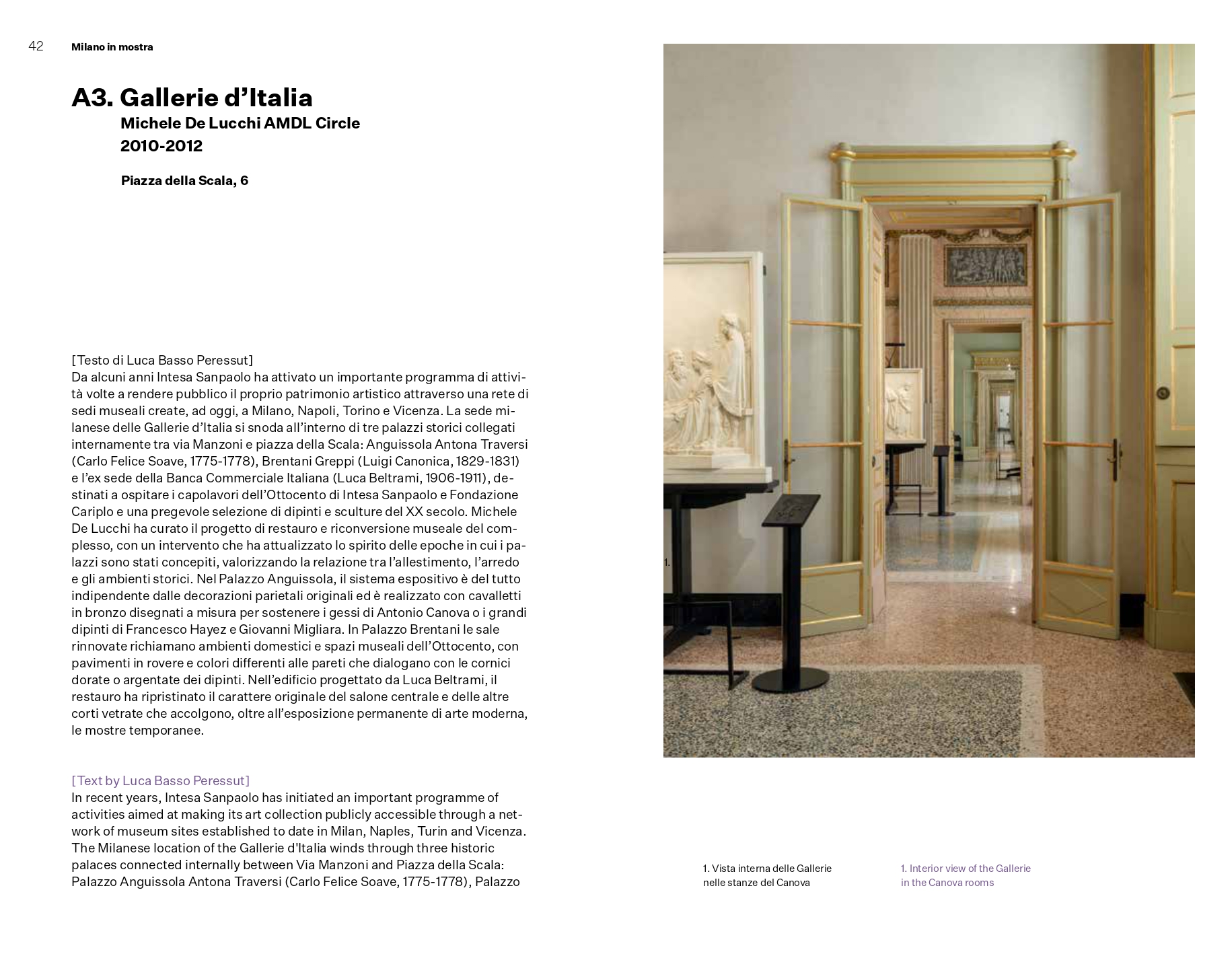 Il libro si apre con il saggio di Luca Basso Peressut, che inquadra lo sviluppo della rete dei musei e degli spazi espositivi milanesi negli ultimi vent'anni, e prosegue con diciotto schede di progetto (firmate dallo stesso Basso Peressut insieme a Marcella Camponogara e Cristina Colombo) organizzate nelle sezioni Musei per il XXI secolo, Gallerie e spazi espositivi per l'arte contemporanea e Design e moda in mostra.